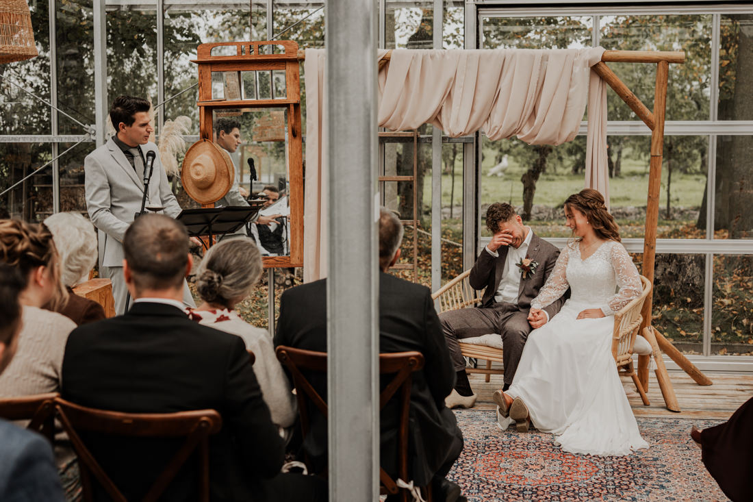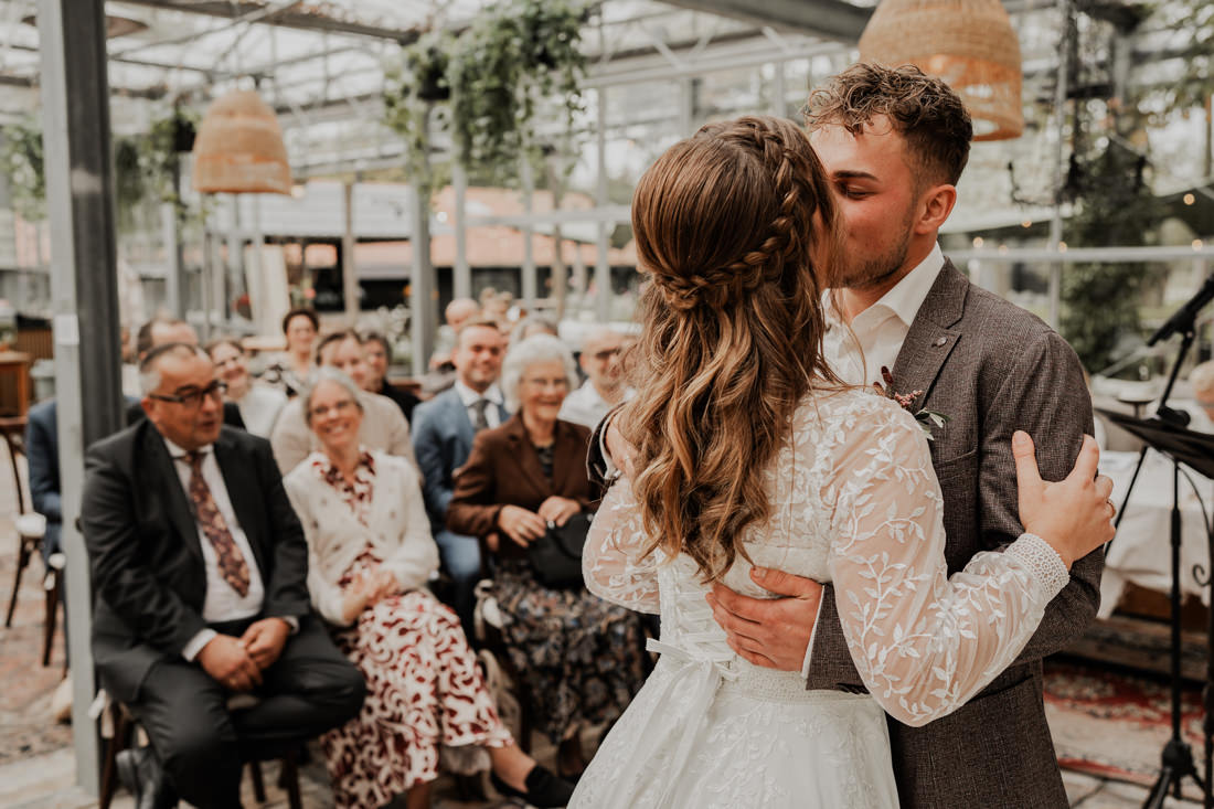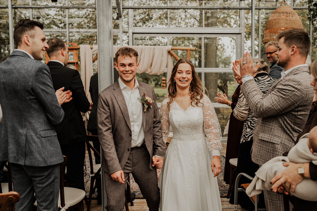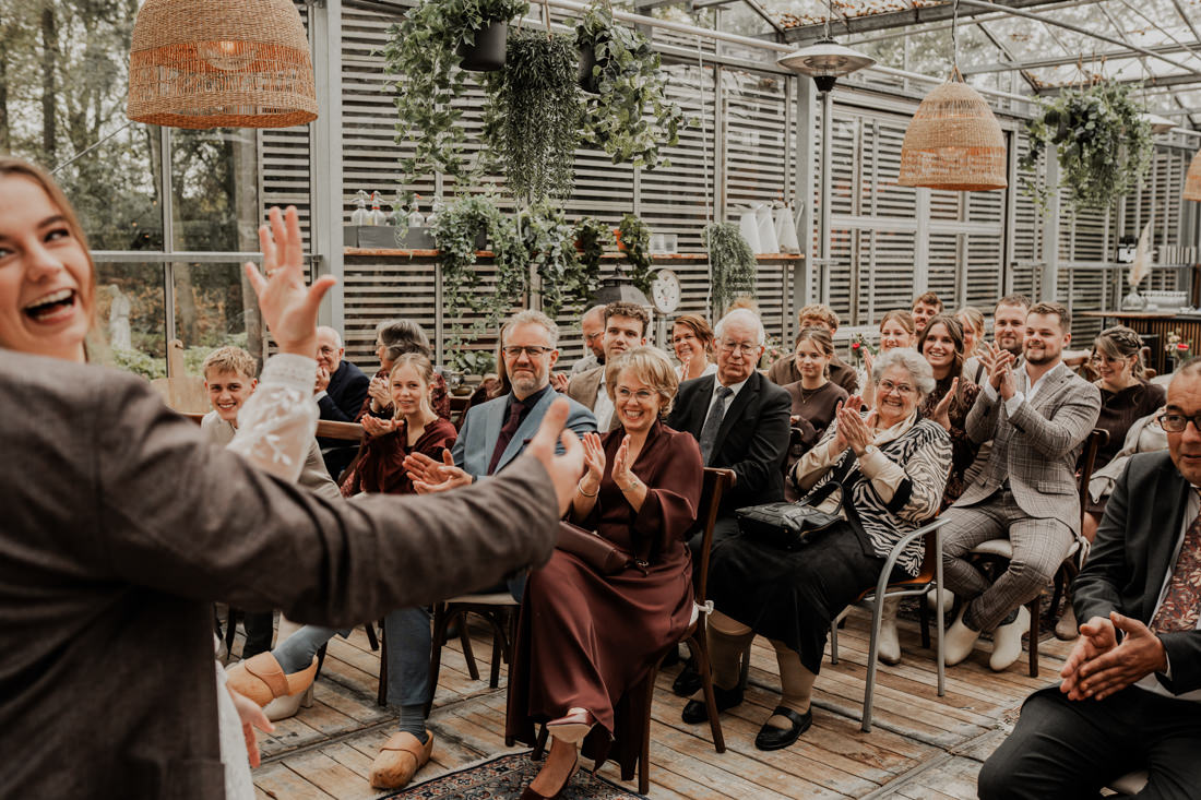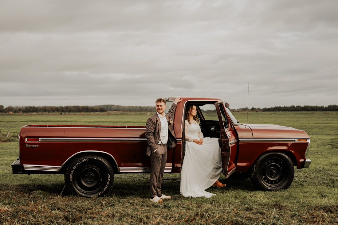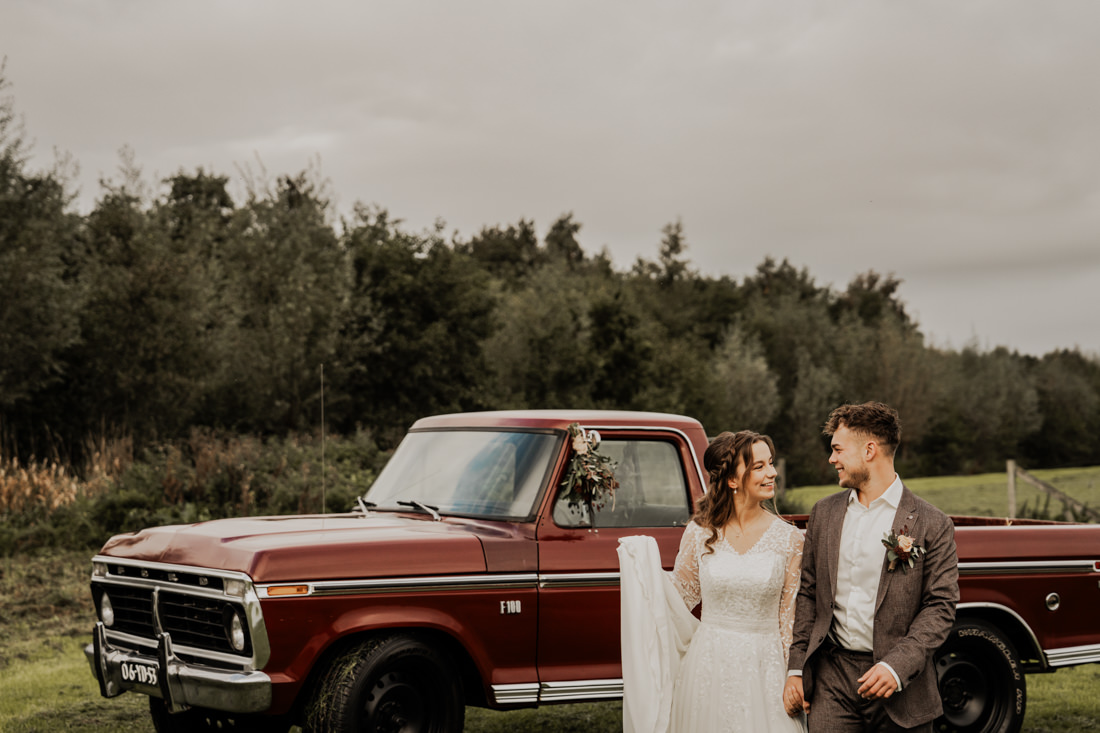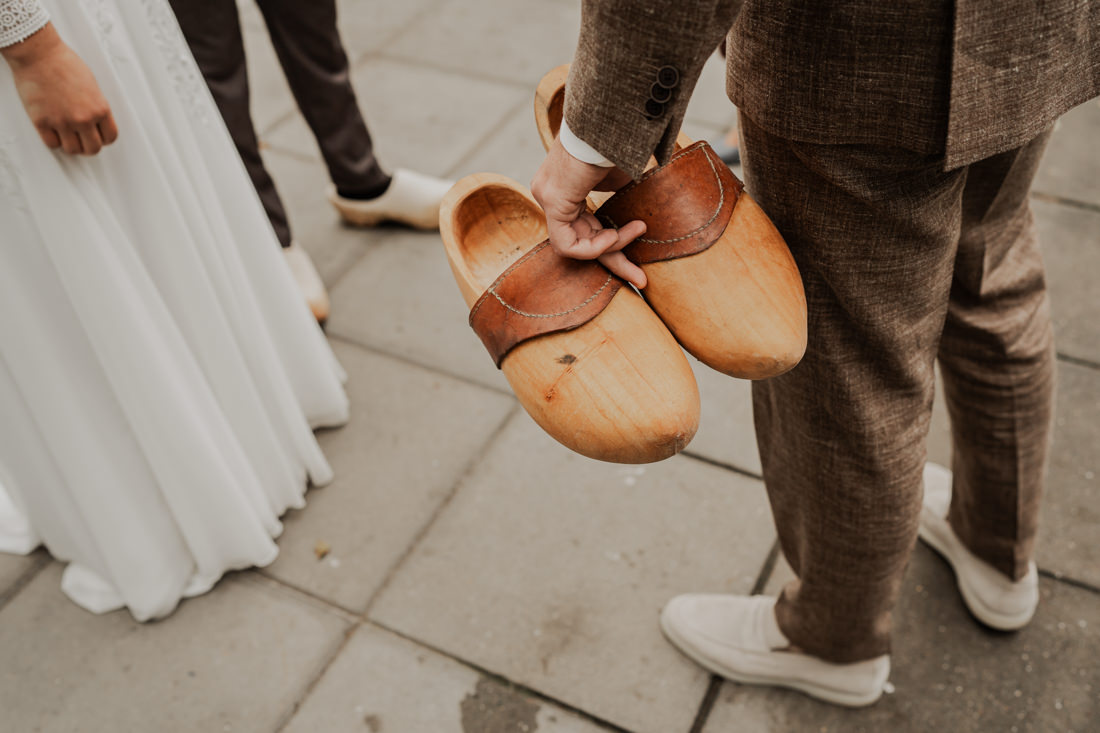 Klompen, cowboylaarzen en heel veel spelletjes. Een sfeertje dat helemaal past bij Aron & Maritte. Wat een heerlijke herfstbruiloft was dit in oktober. En even serieus, hoe tof is deze trouwlocatie!